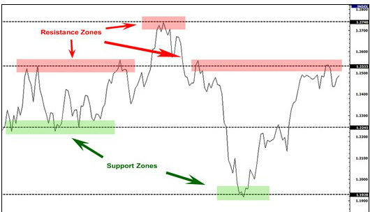 It is almost impossible to to predict the exact number at which a Support or Resistance level will be, so it is much more wise and is much safer to think of these levels as zones instead of exact points.