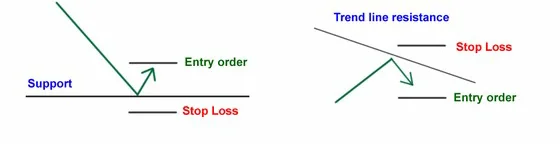 One mistake traders often make is to set their entry orders directly on a support or resistance line, this might work sometimes but you could run into some trouble using this method. One method of trading support and resistance is by waiting for price to bounce off of a support or resistance level and then entering, by doing this you not only have confirmation that the support or resistance level will hold, but you also avoid a situation in which price breaks through the support or resistance level.